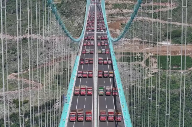 Quick Summary China’s Huajiang Grand Canyon Bridge (625m tall, 2,900m long) has passed a load test with 96 trucks weighing 3,360 tons. Scheduled to open in September 2025, it will be the tallest bridge in...