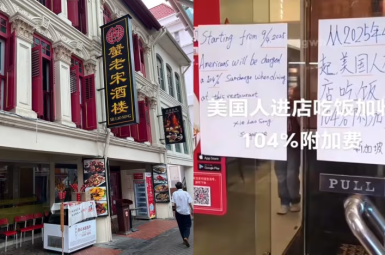 Controversial signage targets American diners A Chinese restaurant in Singapore’s bustling Chinatown district has taken down controversial signs that announced a “104 percent surcharge” on American patrons, following a wave of backlash online and growing...