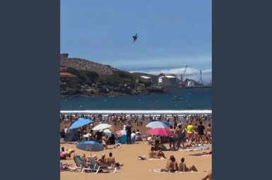 Spanish Fighter Jet EF-18 Hornet’s Dramatic Evasive Maneuver Stuns Beachgoers in Gijón Panic swept through a massive crowd gathered along San Lorenzo Bay in Gijón, Asturias, on Sunday, when a Spanish fighter jet, Air Force...