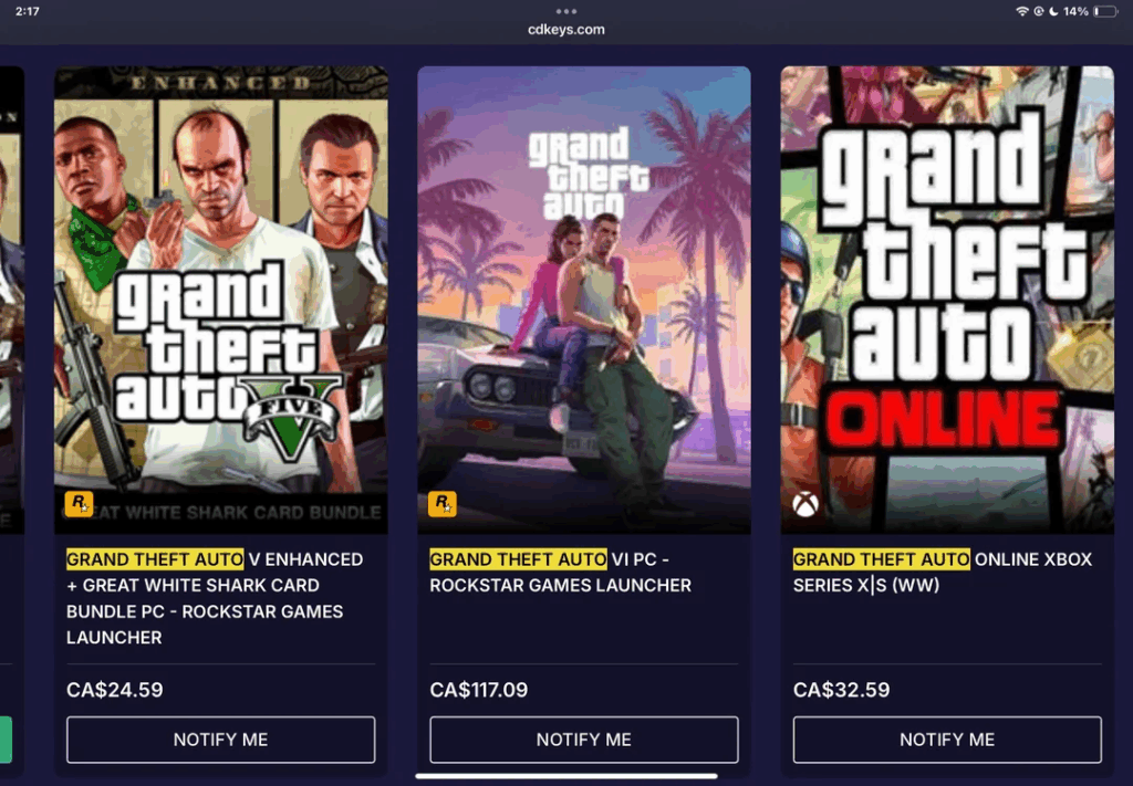 GTA 6 isn’t even out yet, but CDKeys — a well-known digital game retailer — has listed the game on its site with a specific price. According to a Reddit post, the listing pegs GTA 6 at CA$117.09 for the PC version.