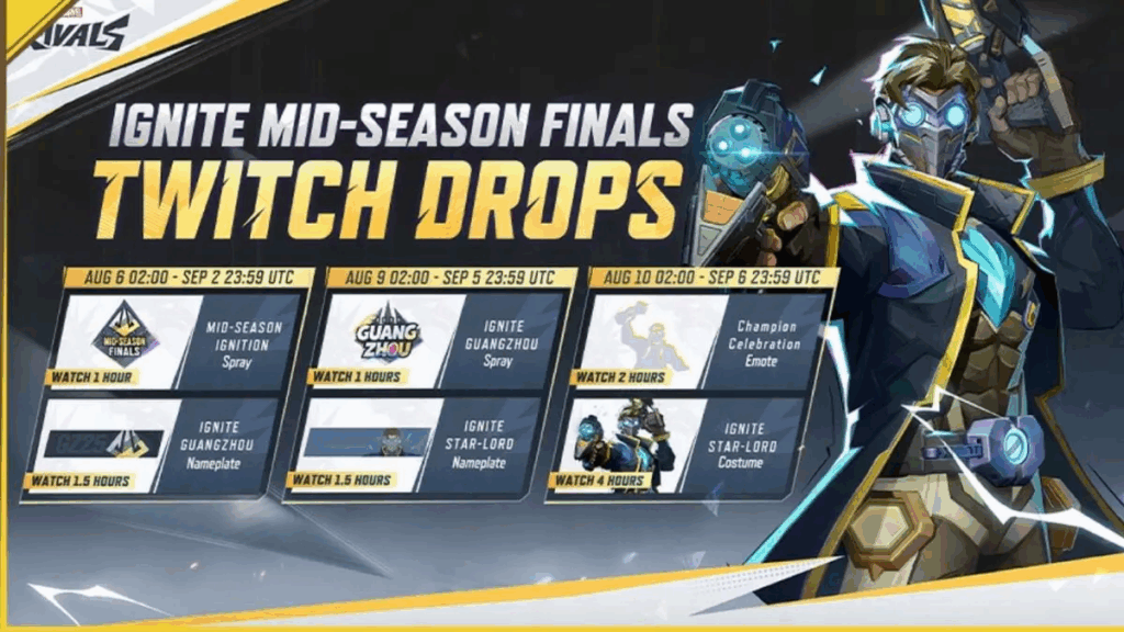 To unlock the Ignite version of Star-Lord, tune in to the Marvel Rivals Ignite Mid-Season Finals on Twitch and watch for at least four hours. This reward is tied to Twitch Drops, so linking your accounts is mandatory.