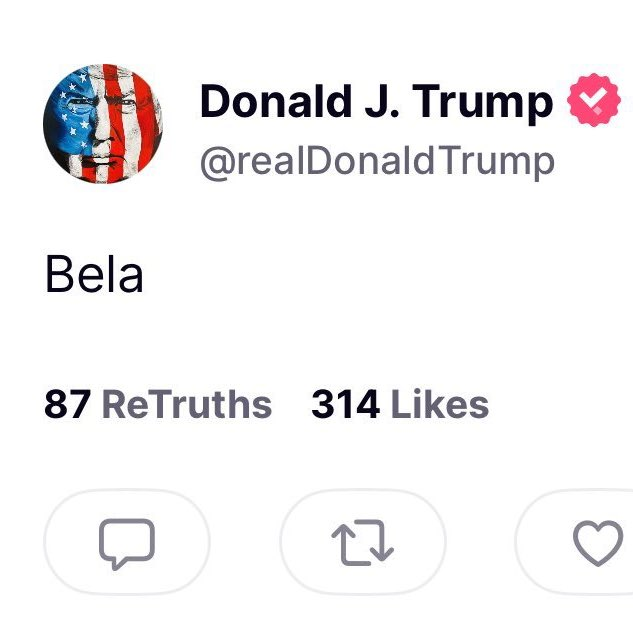 Until then, “Bela” has joined the pantheon of unexplained Trumpisms. Whether it was a typo, a hidden message, or simply an accident, it has already achieved what Trump’s posts often do: seize attention, generate headlines, and dominate conversation.