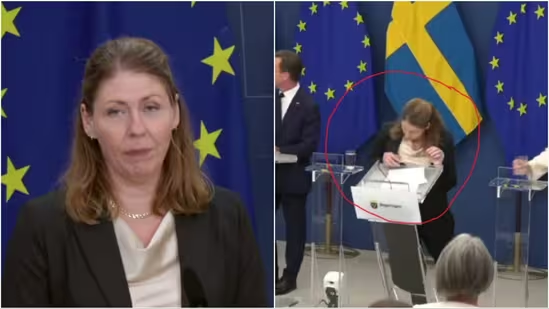 Lann was standing alongside Prime Minister Ulf Kristersson and other senior officials when the episode unfolded. Moments after finishing her remarks, she suddenly lost her balance, toppled into a transparent lectern, and fell to the ground in front of reporters.