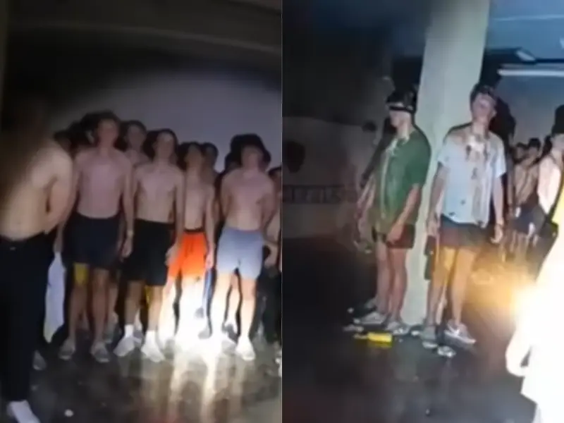 The University of Iowa Alpha Delta Phi hazing video has racked up millions of views, but the shock factor goes beyond what’s visible on screen. In the footage, 56 shirtless pledges stand motionless in a dark basement, some blindfolded, their bodies smeared with condiments and alcohol. When police officers enter and ask questions, no one responds. No one moves. It looks less like a college prank and more like a frozen tableau from a psychological thriller.