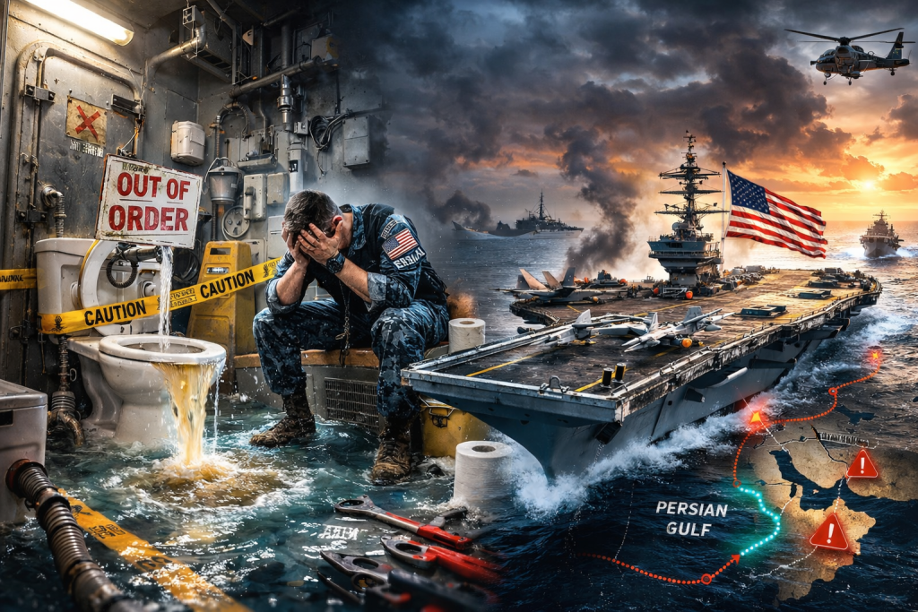 As the United States stages its largest military buildup in the Middle East since the 2003 Iraq invasion, an unlikely phrase has gone viral: “USS Ford bathroom crisis.”