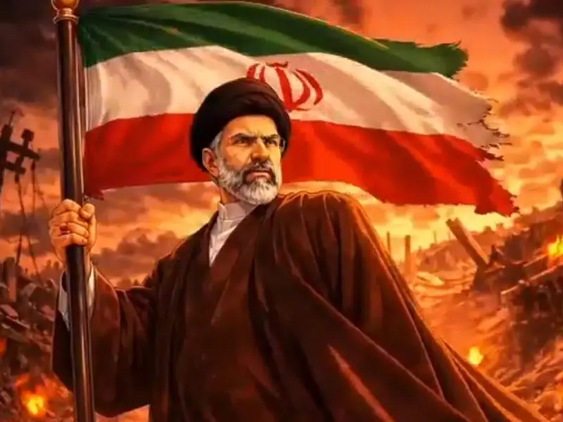 The anime storyline portrays Mojtaba Khamenei stepping into power after his father’s death.