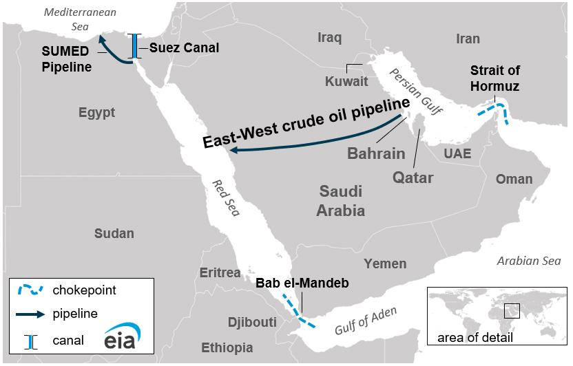 These corridors could bypass not just Hormuz but also the Bab el-Mandeb Strait and even the Suez Canal.