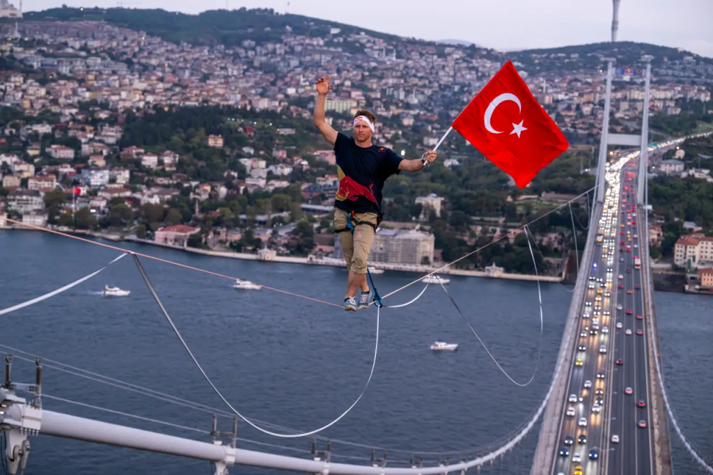 Roose’s journey spanned 1,074 meters as he traversed the 15 July Martyrs Bridge, also known as the Bosphorus Bridge, balancing 165 meters above the shimmering waters of the Bosphorus Strait. Beginning his walk at 6:00 pm on the Asian side of the bridge, Roose took 47 minutes to reach the European continent, cementing his place in the record books.