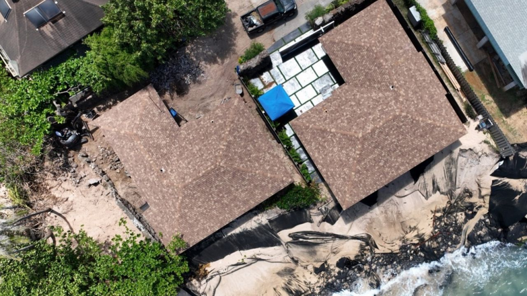 The house in question is located on Ke Nui Road near Sunset Beach, an area increasingly vulnerable to rising sea levels. A video of the collapsing house has gone viral on social media, capturing the moment a bystander warns others, “Be careful where you’re standing. The whole roof is gonna come down right now.”