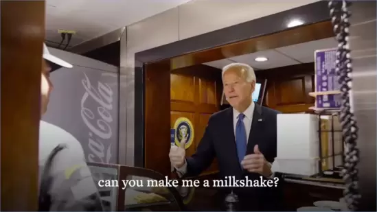 The video opens with archival footage labelled “2022-2004,” showing Biden greeting employees and commending their “positive attitude” despite the drizzle outside. As the camera rolls, Biden is seen ordering milkshakes on two occasions, adding a touch of humour to the serious atmosphere often associated with the presidency.