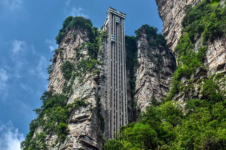 To address this, China undertook an ambitious engineering project: the Bailong Elevator, also known as the Hundred Dragons Elevator. Built into the side of a cliff, this double-deck glass elevator was constructed in October 1999 at a cost exceeding $20 million.