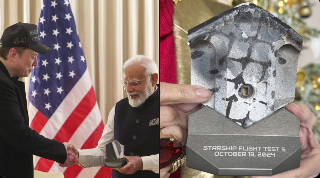 Billionaire Elon Musk presented a special gift to Prime Minister Narendra Modi during their meeting at Blair House in the United States. Speculation has been growing over what exactly the gift was, and according to reports, the Indian leader received a piece of the world’s largest and most powerful rocket—Starship.