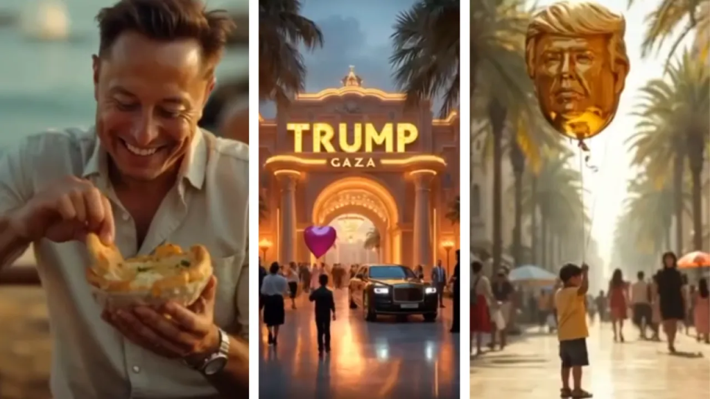The AI-generated video depicts the Gaza coastline transformed into a luxurious destination, complete with promenades, high-rise buildings, and pristine beaches. However, the surreal nature of the video quickly caught attention, as it included belly dancers, a child holding a golden balloon shaped like Trump’s face, and a massive golden statue of Trump towering over the city.
