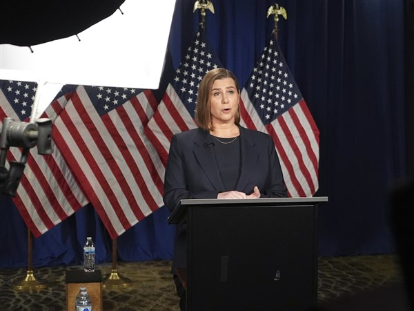 Slotkin, 48, who secured a hard-fought Senate victory last year, took on the formidable challenge of countering a president she accused of “cosying up to dictators like Vladimir Putin.”
