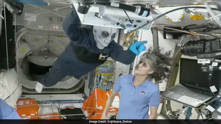 International Space Station: NASA astronaut Nick Hague donned a grey alien mask as he welcomed the newly arrived SpaceX crew to the International Space Station (ISS) on Sunday (March 16). Sunita Williams and Butch Wilmore, the two U.S. astronauts stranded in space for nine months, shared a lighthearted moment with Hague as he floated into the hatch wearing the alien disguise.