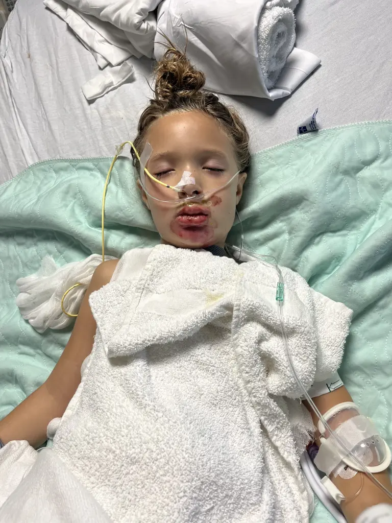 Her father, Josh Selby, 44, was alerted by her blood-curdling scream and rushed to help. He desperately tried to remove the sticky, searing substance from her skin and clothes before rushing her to the hospital. Doctors induced a coma out of concern that the burns around her mouth could swell and block her airways.