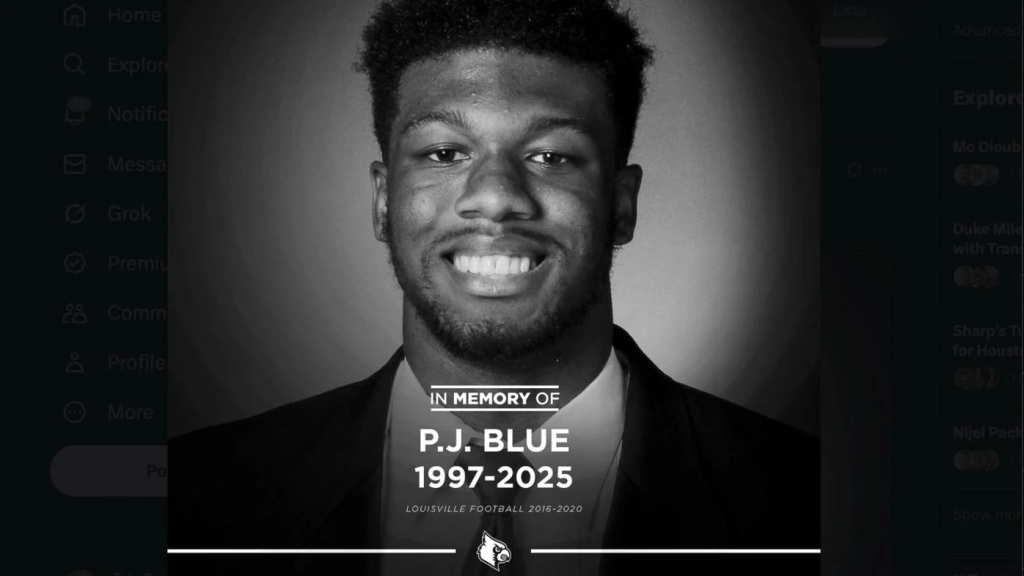 P.J. Blue, a former linebacker for the Louisville Cardinals football team, has died at the age of 27. The University of Louisville confirmed his death in a statement posted on social media, expressing condolences to his family and loved ones. The cause of death has not been made public.